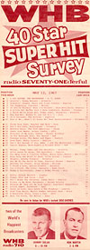 This montage of WHB jingles includes cuts from PAMS Series 15 thru 33, as well as the “finger-snap” series produced for WHB in 1969. The famous “Yours Truly WHB” melody was predominantly used from around 1960 until 1969, when the “finger snaps” went on the air. But during a brief spell, WHB turned away from its famous “Yours Truly” melody to use the “Wonderful WHB” logo.